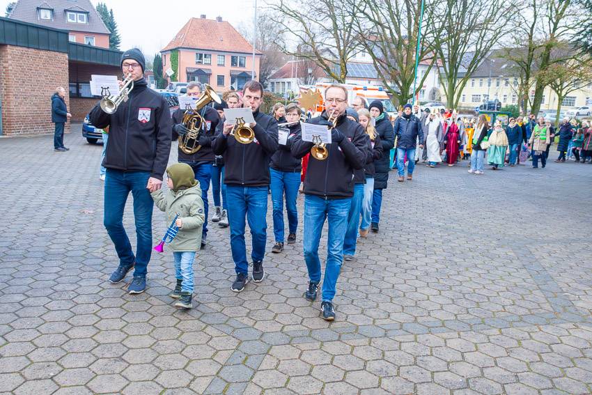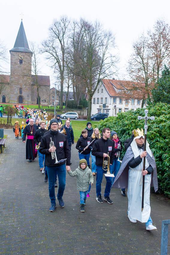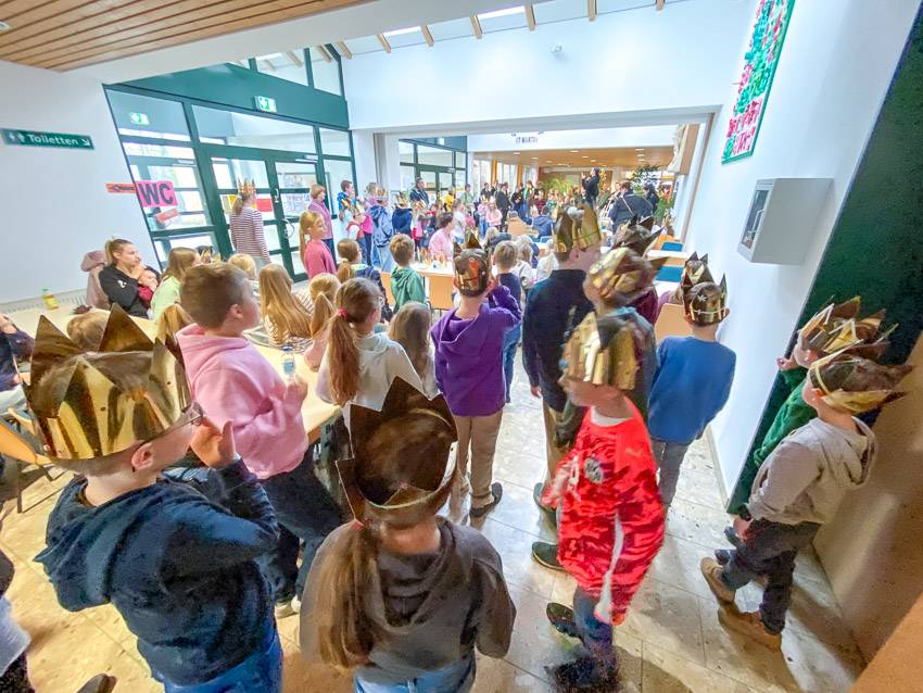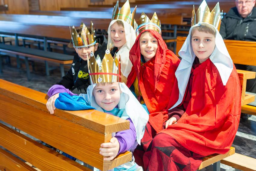 Der Weg der Königinnen und Könige von der Grundschule zur Pfarrkirche St. Martinus wurde von den Klängen des Musikkapelle Hagen a.T.W. begleitet und verlieh dem Einzug eine besondere Atmosphäre. Musikalisch gestaltet wurde der Gottesdienst vom Hagener Mehrgenerationenchor unter der Leitung von Valentina Berger und Josef Berger, die mit ihrem Engagement wesentlich zum Gelingen beitrugen.