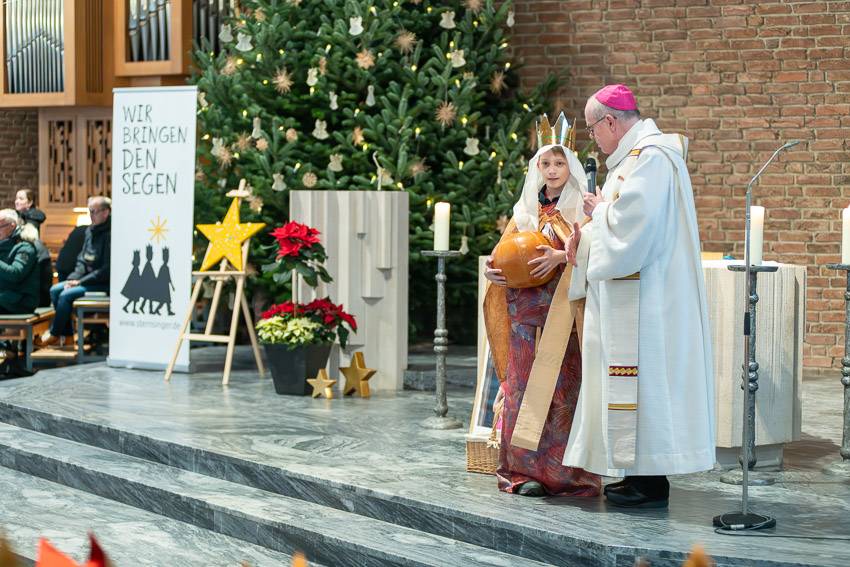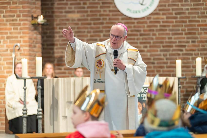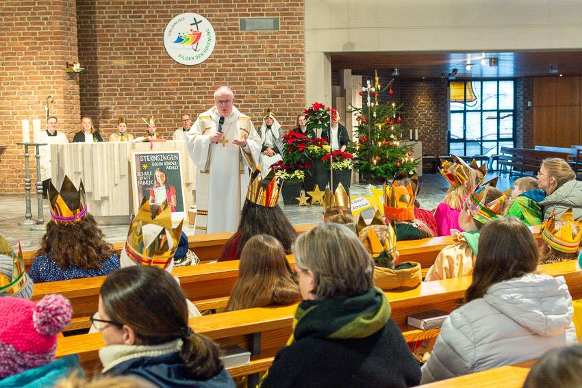 Inhaltlich stand das Motto „Schule statt Fabrik – Sternsingen gegen Kinderarbeit“ im Mittelpunkt. In Workshops und vielen Aktionen setzten sich die Kinder und Jugendlichen auf praktische und kreative Weise mit dem Thema auseinander. In der Grundschule St. Martin wurde gebastelt, gestaltet, bewegt und musiziert. Im anschließenden Wortgottesdienst griff Weihbischof Johannes Wübbe das Aktionsmotto in seiner Ansprache auf eine klare und kindgerechte Weise auf. Er machte deutlich, warum Bildung wichtig für Kinder ist und weshalb Kinderarbeit keinen Platz haben darf.